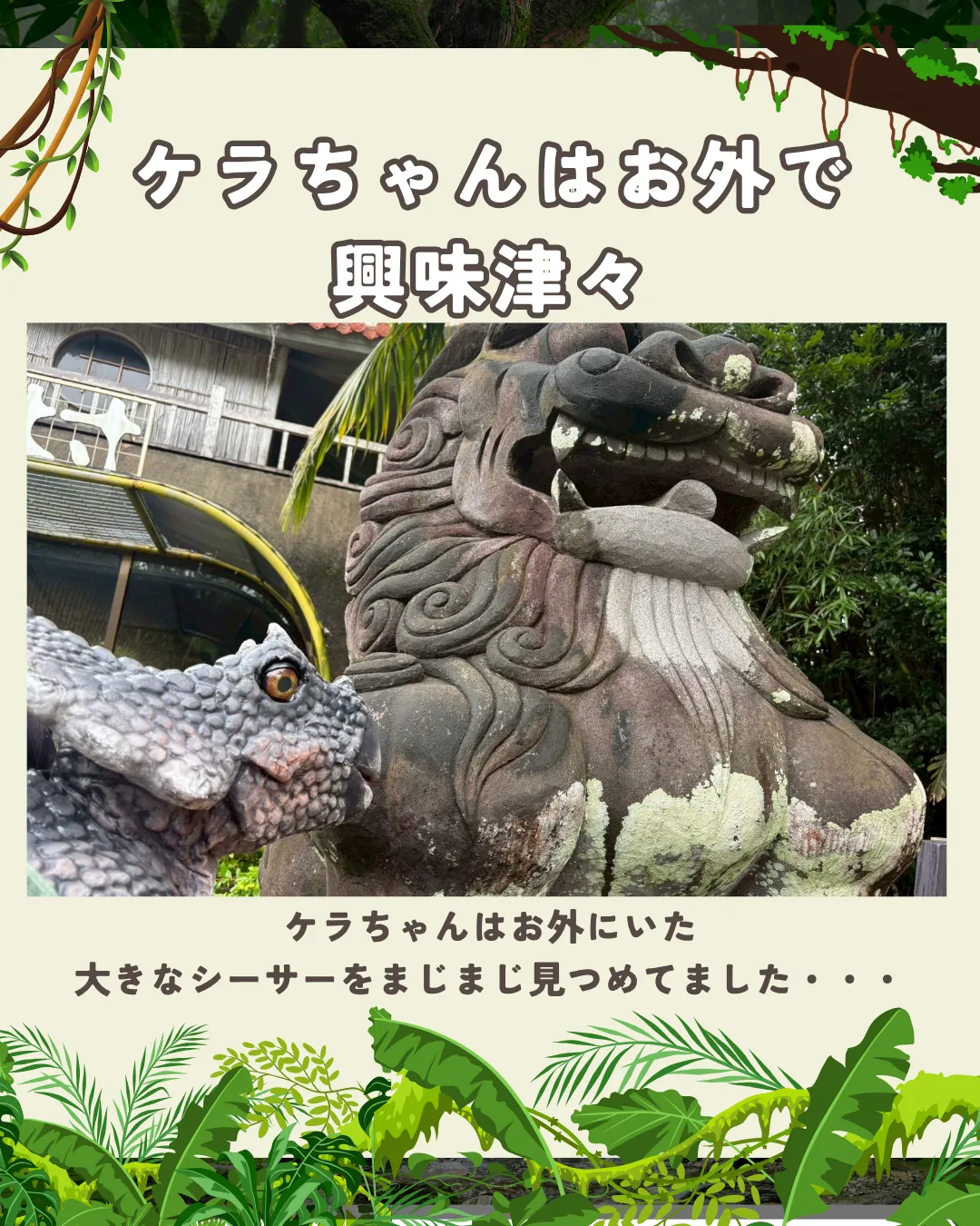 ケラちゃんは外でシーサーに夢中👀💕