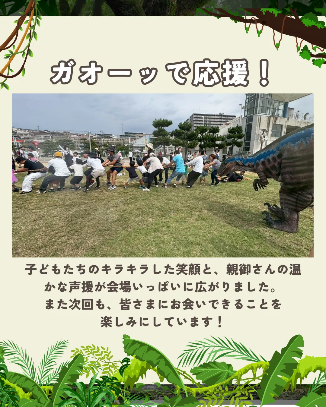 🦖 恐竜が登場してのガオーッ応援には、子どもたちも大興奮!