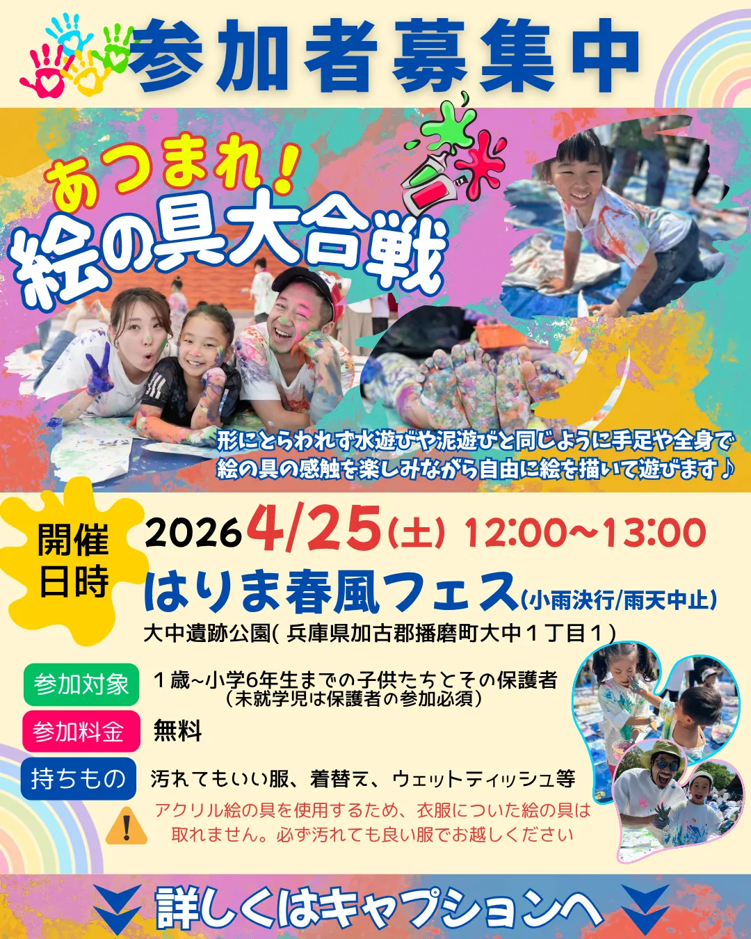 4/25(土) はりま春風フェスで【絵の具大合戦】開催します🫶🏻